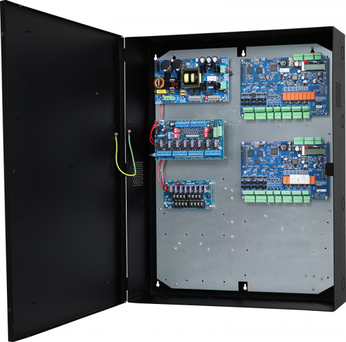 Altronix T2AGK78S kit consists of Trove2 enclosure, TAM2 AMAG/Altronix backplane with one (1) 24VDC @ 10A power supply/charger, one (1) dual input fused access power controller, one (1) voltage regulator and one (1) dual input fused power distribution module. This kit also accommodate up to two (2) AMAG M4000 modules for up to eight (8) doors in a single enclosure. Trove simplifies board layout and wire management, reduces installation time and labor costs.